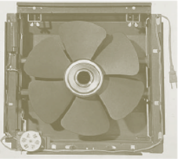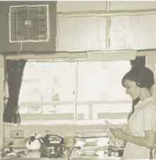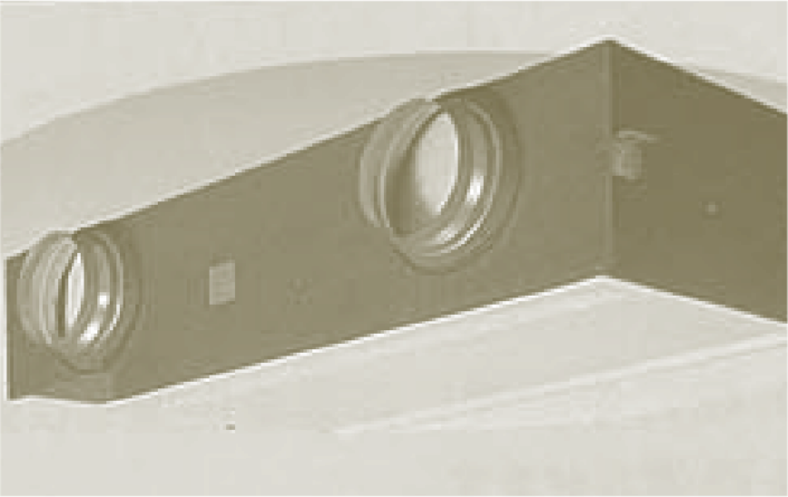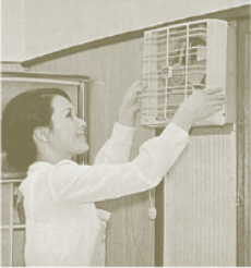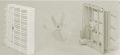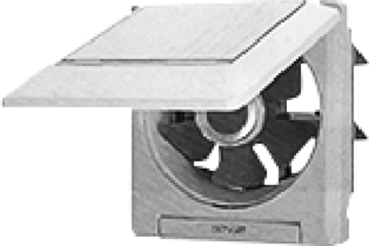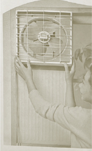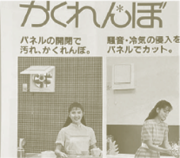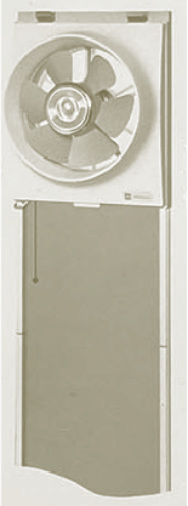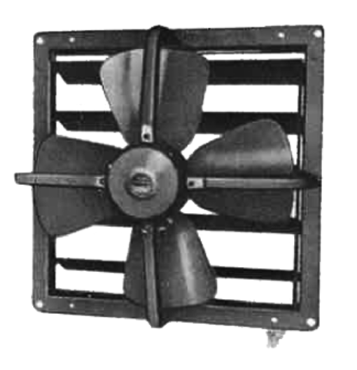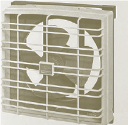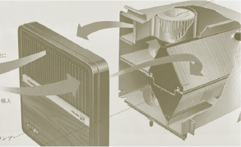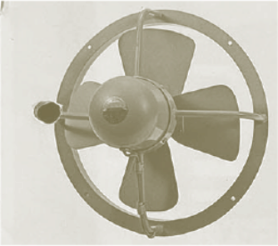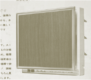 当時の製品は丸形の枠でシャッターはなく、現在の業務用換気扇によく似たものでした。